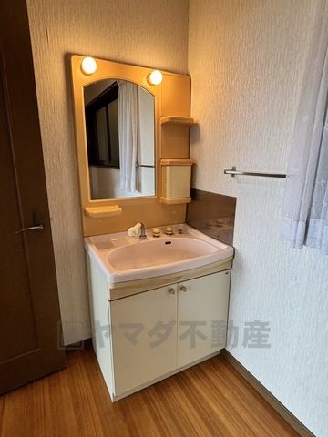 鏡横に収納スペースがあります。