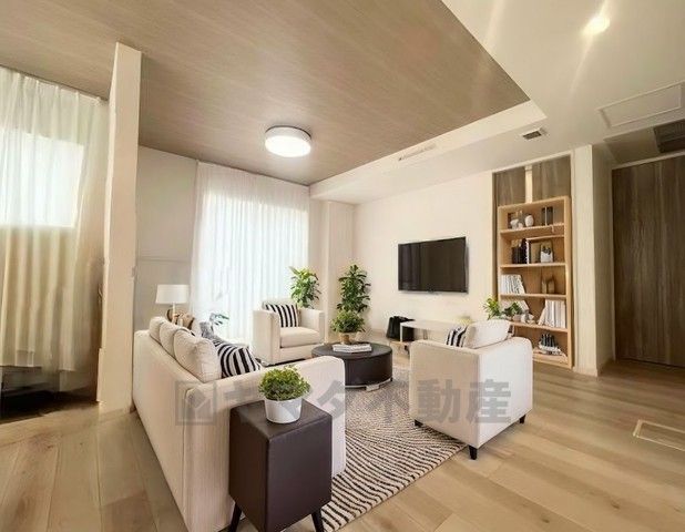 大型テレビも置ける、広々リビングは、陽当りが良く、部屋いっぱいに明るい陽光が広がります。 明るく居心地の良いリビング空間には、自然と家族が集まります